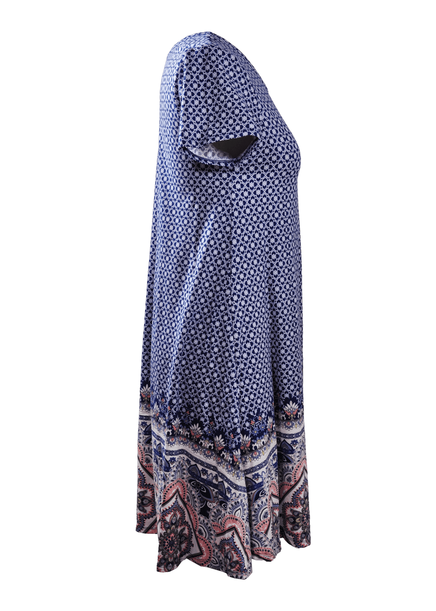 - The casual dress is above the knees and long enough that you wouldn't need to wear leggings with it if you didn't want too.It's a Swing style so it would fit comfortably over large hips. ,it's loose enough but not baggy.
